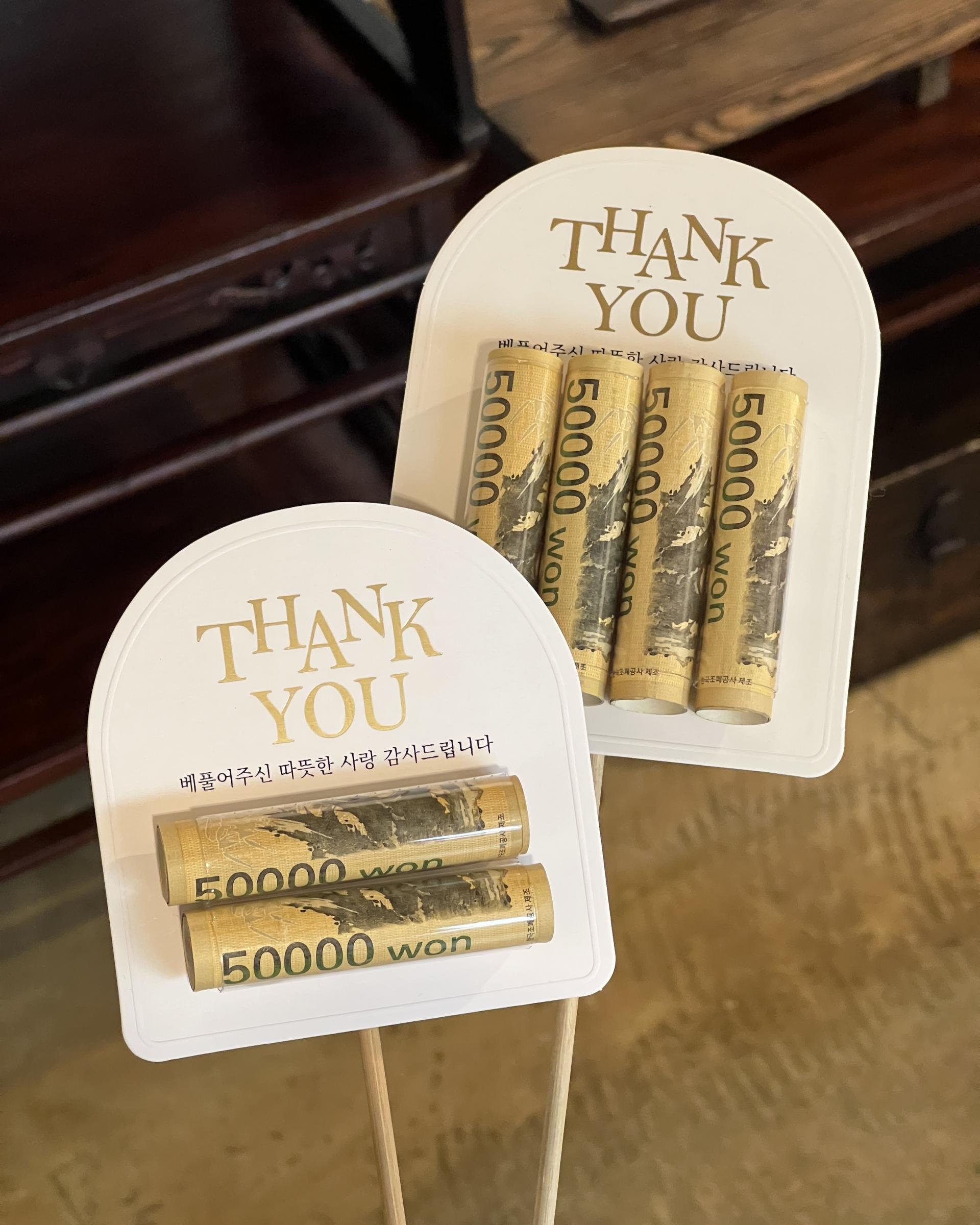 용돈을 인출해 오시면 꽃 사이에 꽂아 완성합니다.